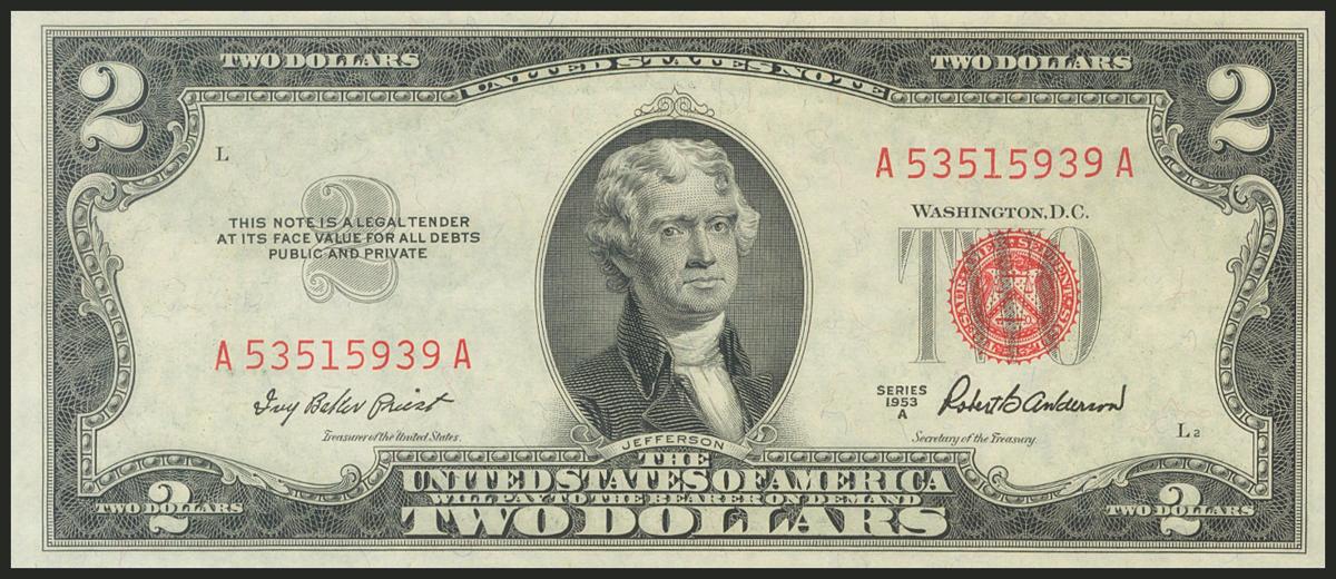 USA. 2 Dollars. Legal Tender Note. Serial number A-A. 1953A. (Friedberg: 1510). Uncirculated.