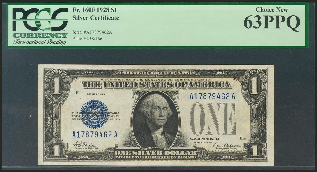 USA. 1 Dollar. Silver Certificate Note. Serial number A-A. 1928. (Friedberg: 1600). PCGS63PPQ.