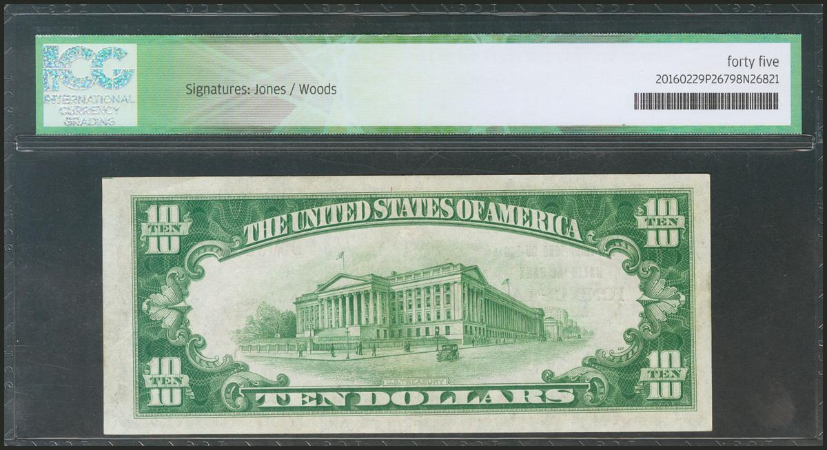 USA. 10 Dollars. National Currency. Wisconsin. Serial number D-A, low serial. 1929. (Friedberg: 1801-T1 Charter 555). ICG45.