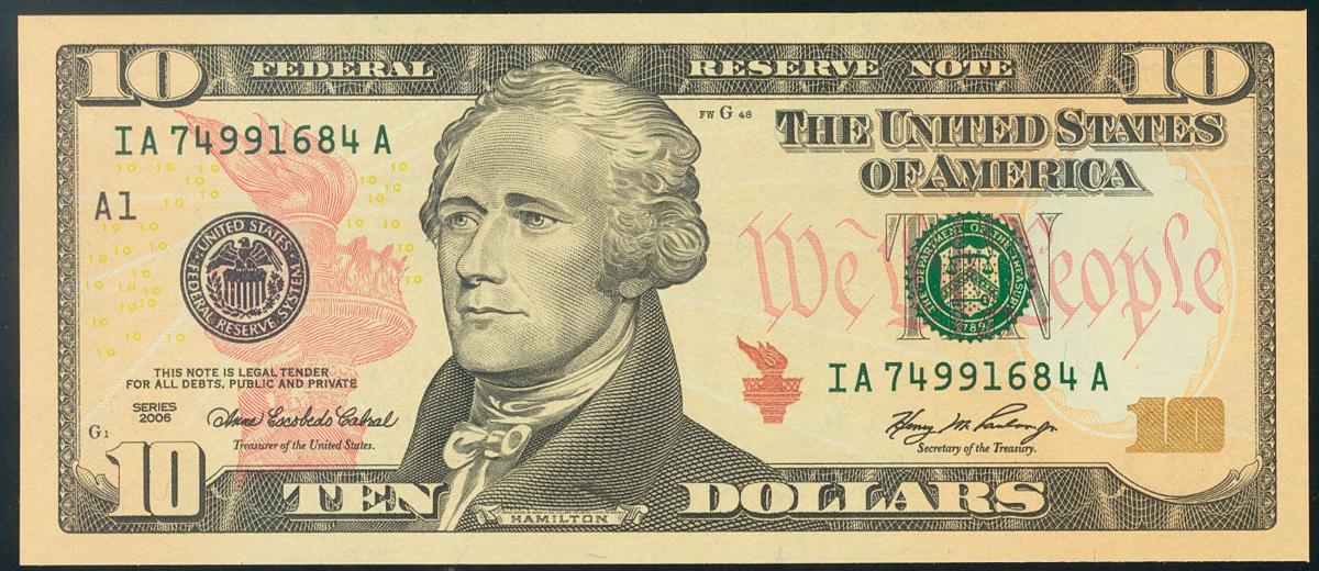 USA. 10 Dollars. Federal Reserve Note. Boston. Serial number IA-A. 2006. (Friedberg: 2040A, Pick: 525). Uncirculated.
