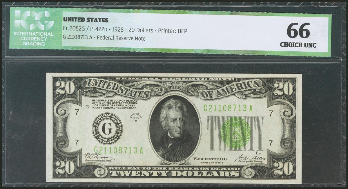 USA. 20 Dollars. Federal Reserve Note. Chicago. Serial number G-A. 1928B. (Friedberg: 2052G, Pick: 422b). ICG66.