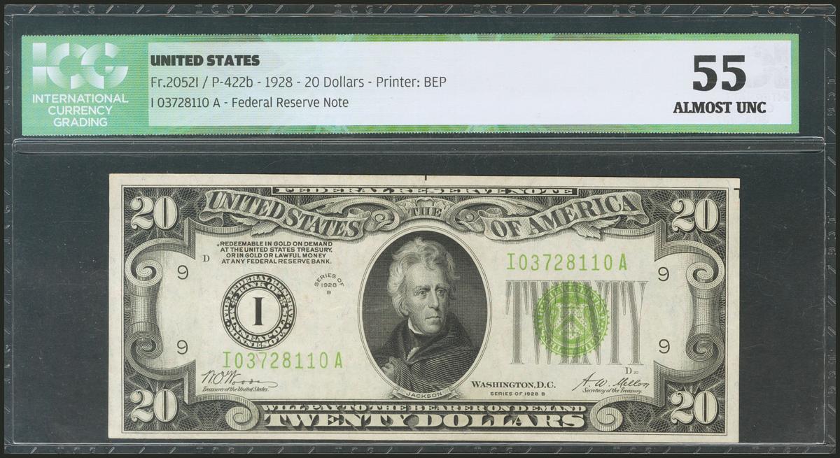 USA. 20 Dollars. Federal Reserve Note. Minneapolis. Serial number I-A. 1928B. (Friedberg: 2052I, Pick: 422b). ICG55.