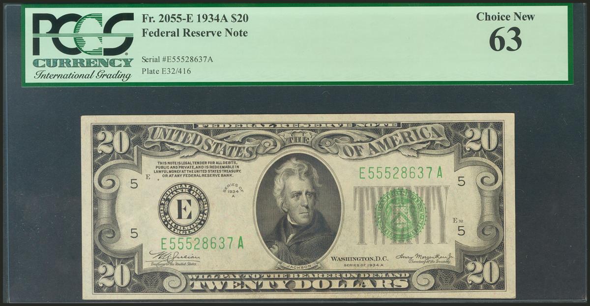 USA. 20 Dollars. Federal Reserve Note. Richmond. Serial number E-A. 1934A. (Friedberg: 2055E). PCGS63.
