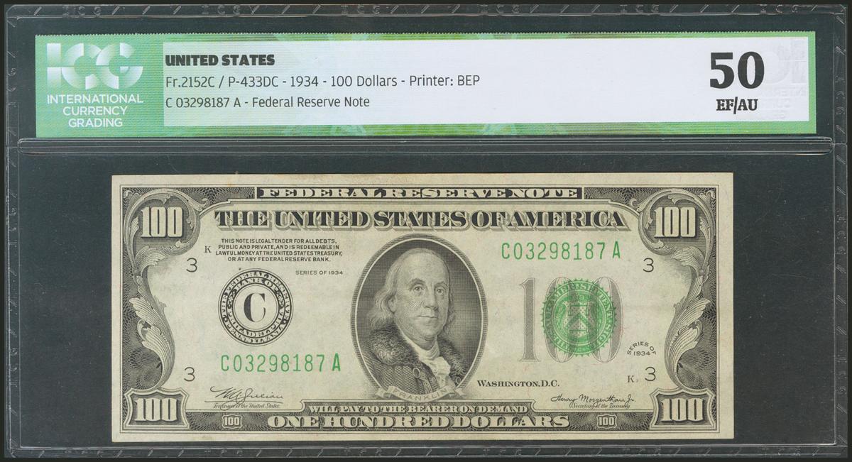 USA. 100 Dollars. Federal Reserve Note. Philadelphia. Serial number C-A. 1934. (Friedberg: 2152C, Pick: 433DC). ICG50.