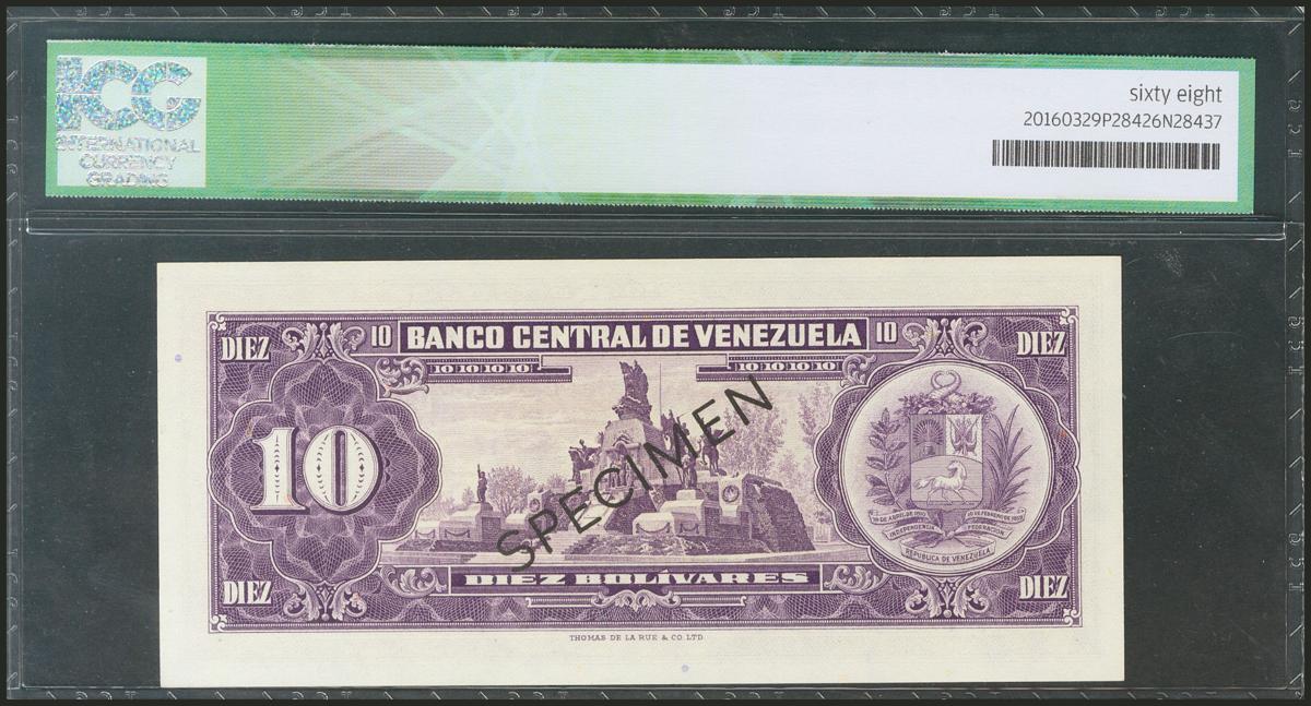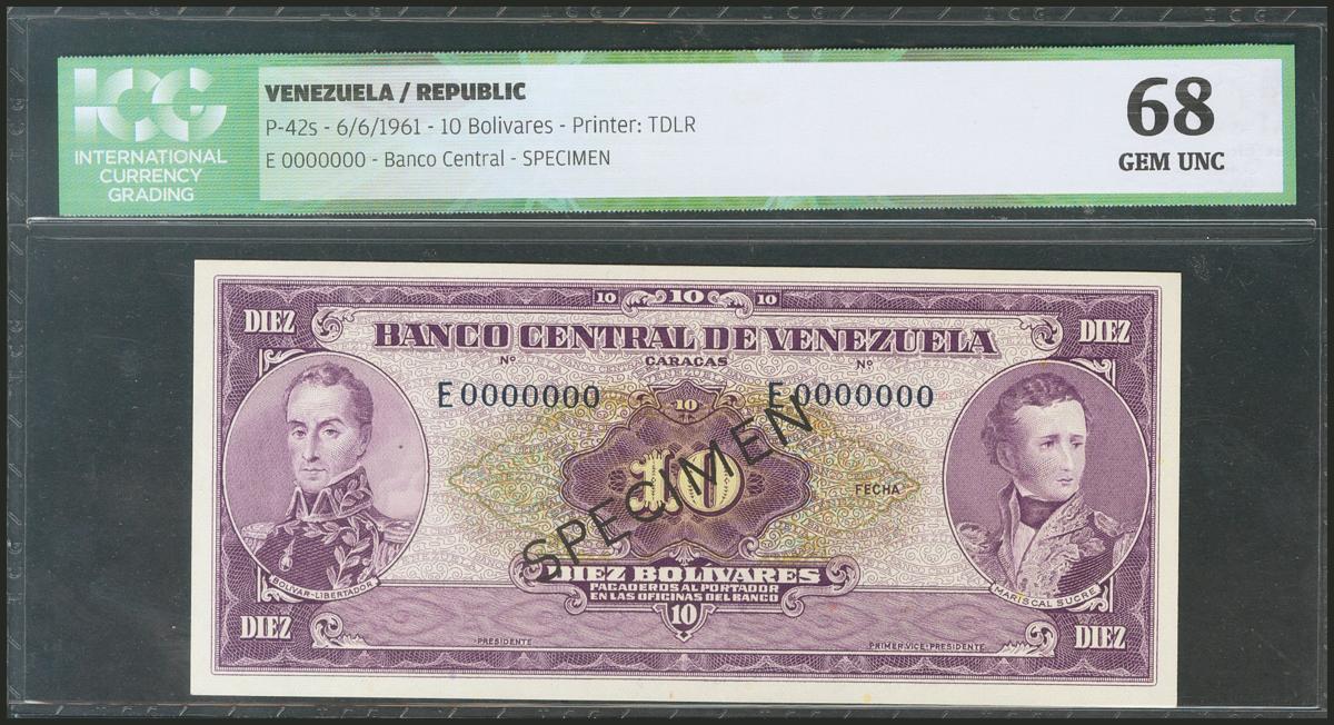 VENEZUELA. 10 Bolívares. 6 June 1961. Specimen E000000. (Pick: 42s). ICG68.