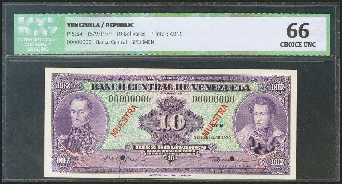 VENEZUELA. 10 Bolívares. 18 September 1979. Specimen 0000000. (Pick: 51s4). ICG66.