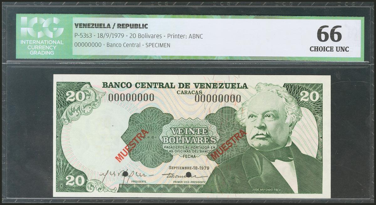 VENEZUELA. 20 Bolívares. 18 September 1979. Specimen 0000000. (Pick: 53s3). ICG66.