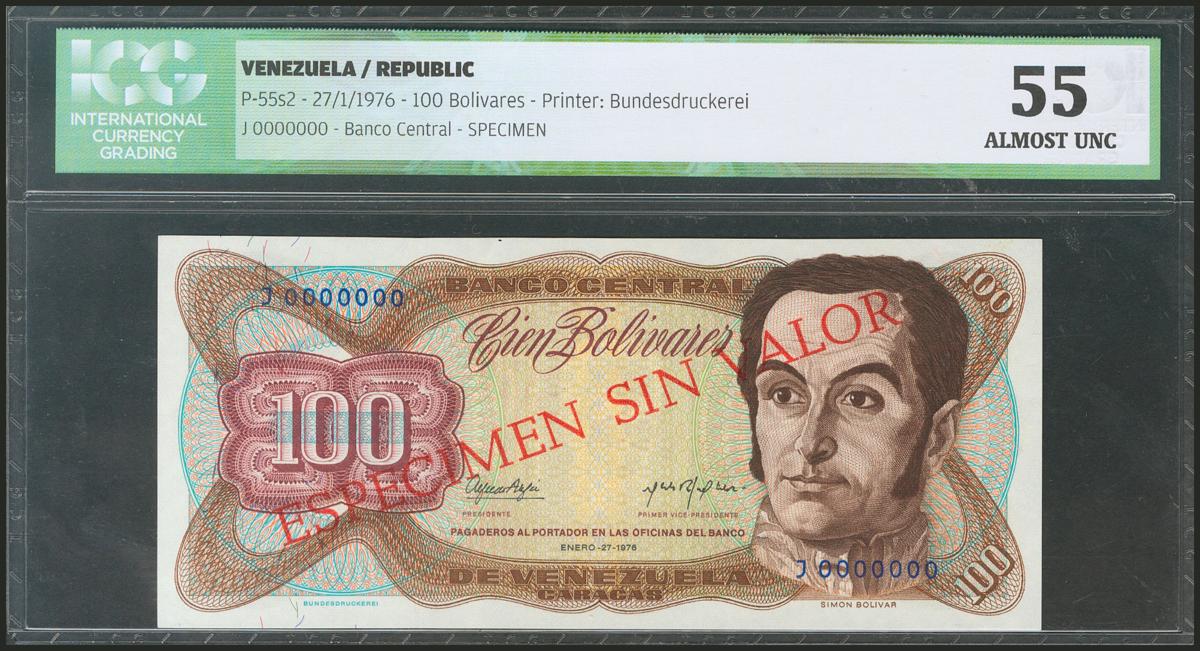 VENEZUELA. 100 Bolívares. 27 January 1976. Specimen J000000. (Pick: 55s2). ICG55.