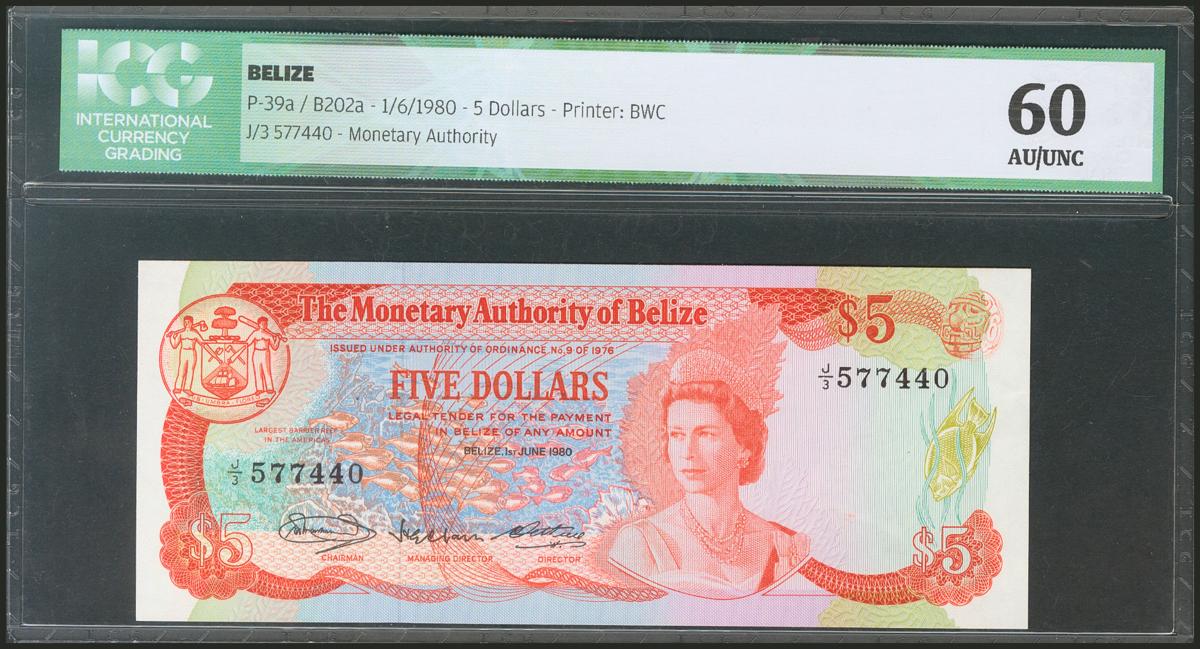 BELIZE. 5 Dollars. 1 June 1980. (Pick: 39a). ICG60.