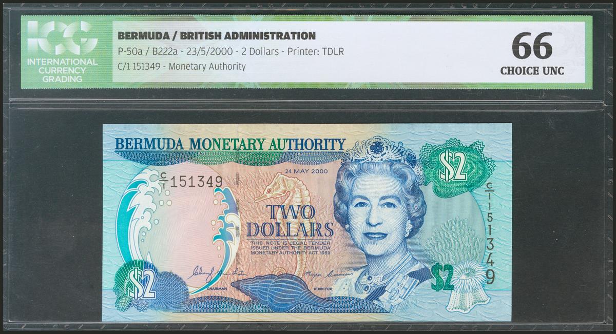 BERMUDA. 2 Dollars. 23 May 2000. (Pick: 50a). ICG66.