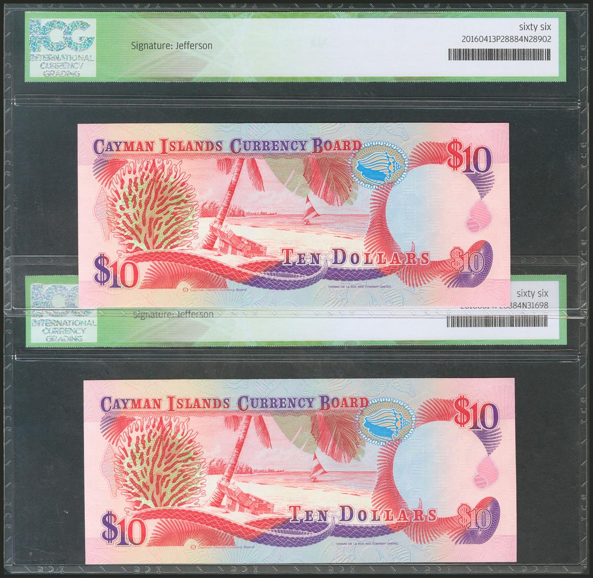 CAYMAN ISLANDS. 10 Dollars. 1991. Consecutive pair and low numeration. (Pick: 13a). ICG66.