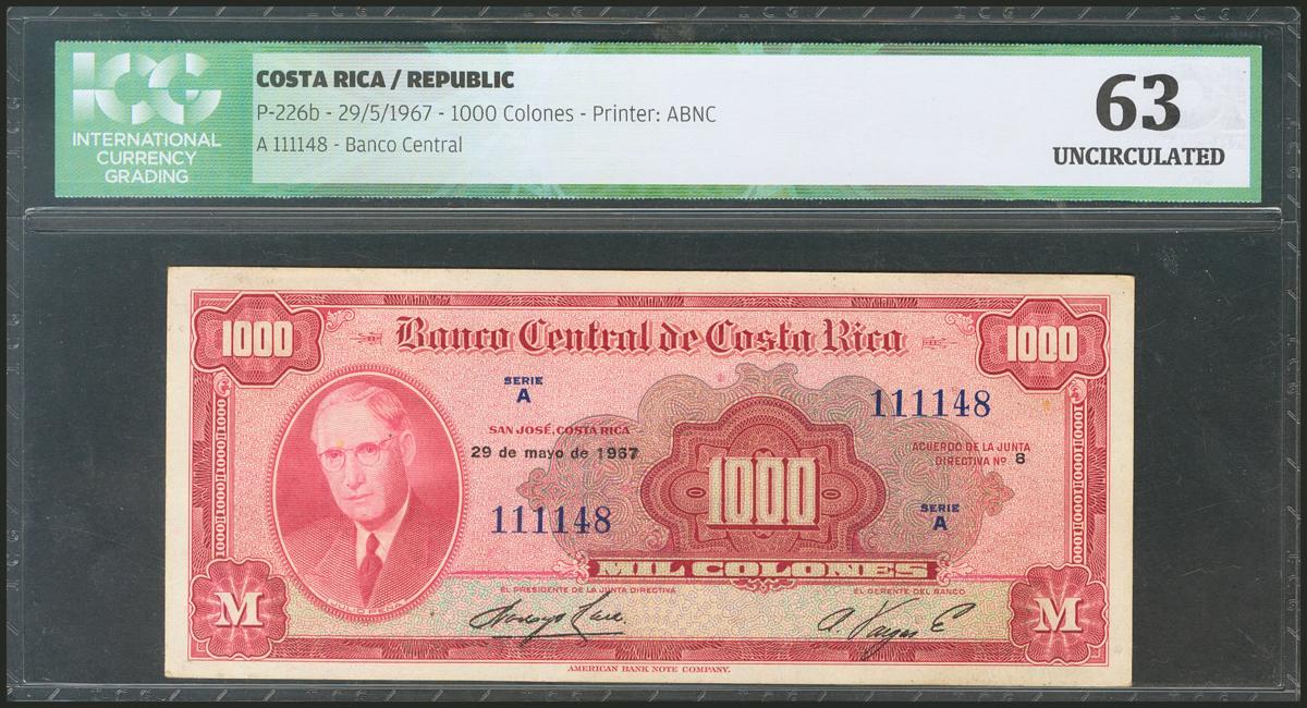 COSTA RICA. 1000 Colones. 29 May 1967. (Pick: 226b). ICG63.