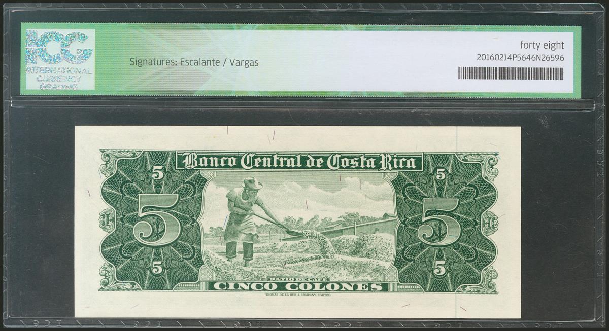 COSTA RICA. 5 Colones. 9 September 1964. (Pick: 228a). ICG48.
