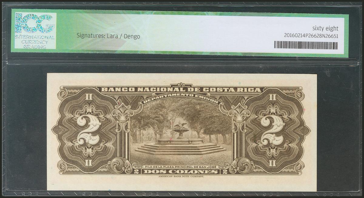 COSTA RICA. 2 Colones. 5 December 1967. (Pick: 235). ICG68.