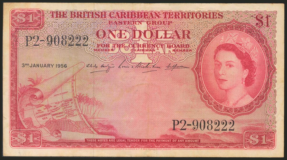 EAST CARIBBEAN STATES. 1 Dollar. 1956. (Pick: 7b). Fine.