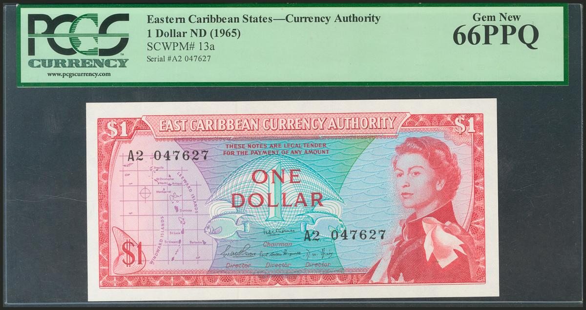 EAST CARIBBEAN STATES. CURRENCY AUTHORITY. 1 Dollar. 1965. (Pick: 13a).PCGS 66PPQ.