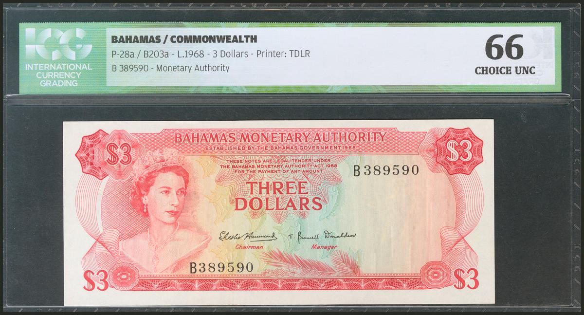 BAHAMAS. 3 Dollars. 1968. (Pick: 28a). ICG66.