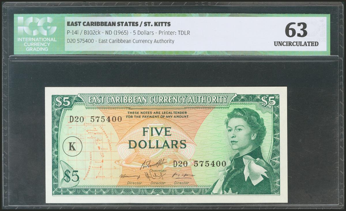 EAST CARIBBEAN STATES. 5 Dollars. 1965. Saint Kitts. (Pick: 14l). ICG63.