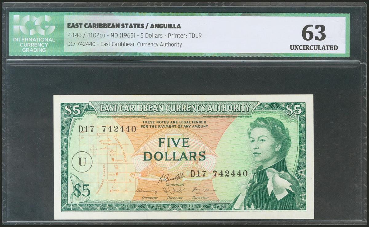 EAST CARIBBEAN STATES. 5 Dollars. 1965. Anguilla. (Pick: 14o). ICG63.