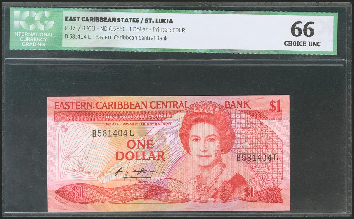 EAST CARIBBEAN STATES. 1 Dollar. 1985. Saint Lucia. (Pick: 17l). ICG66.