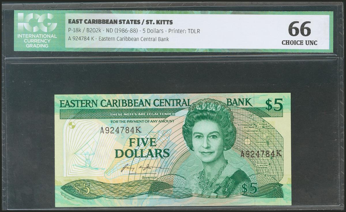 EAST CARIBBEAN STATES. 5 Dollars. 1986. Saint Kitts. (Pick: 18k). ICG66.