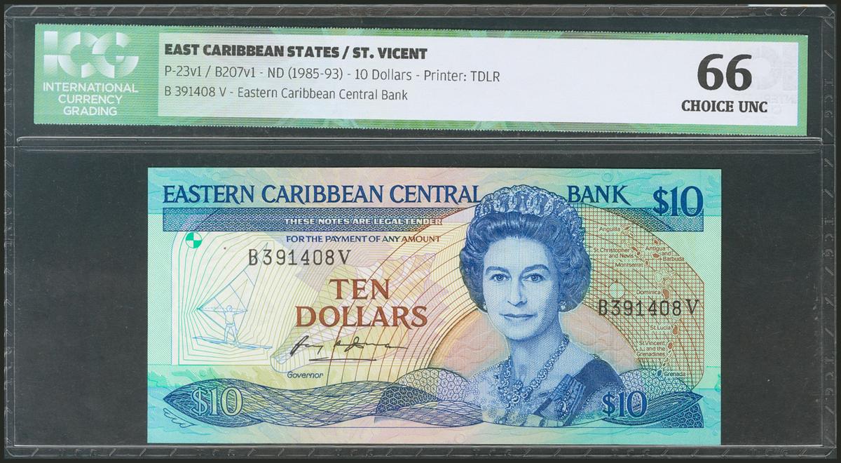 EAST CARIBBEAN STATES. 10 Dollars. 1985. Saint Vincent. (Pick: 23v1). ICG66.