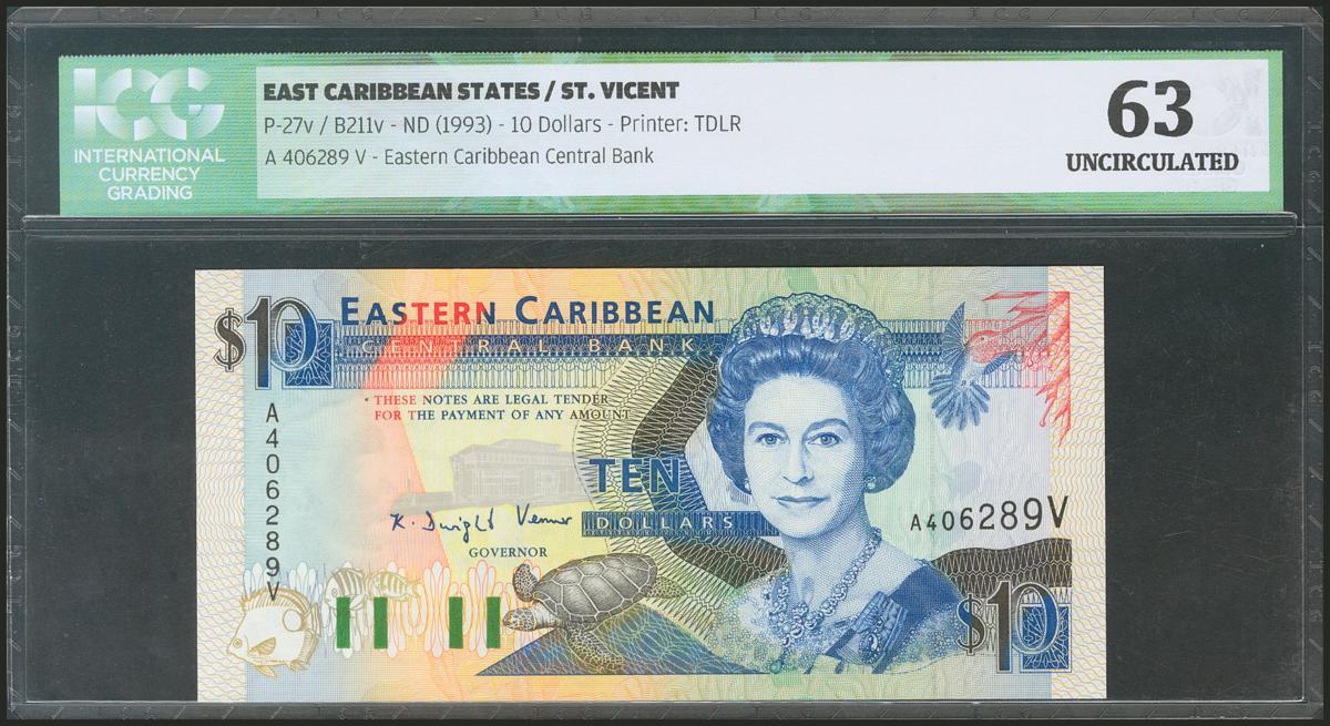 EAST CARIBBEAN STATES. 10 Dollars. 1993. Saint Vincent. (Pick: 27v). ICG63.