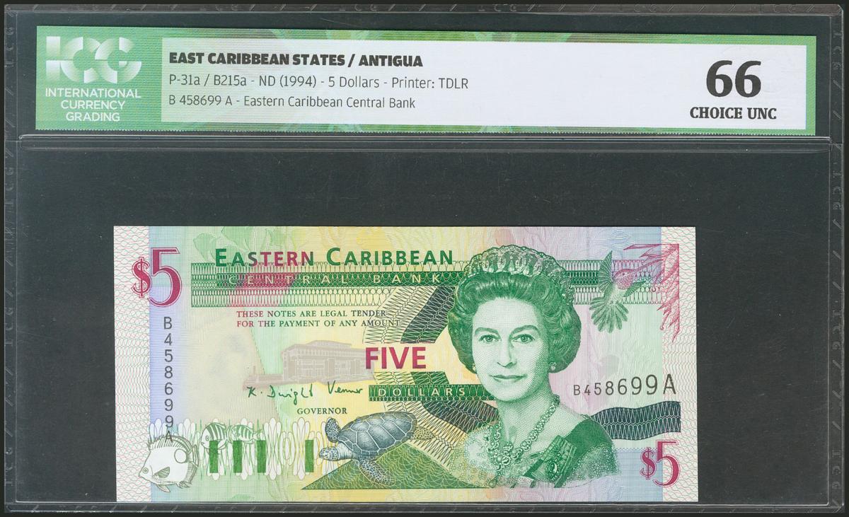 EAST CARIBBEAN STATES. 5 Dollars. 1994. Antigua. (Pick: 31a). ICG66.