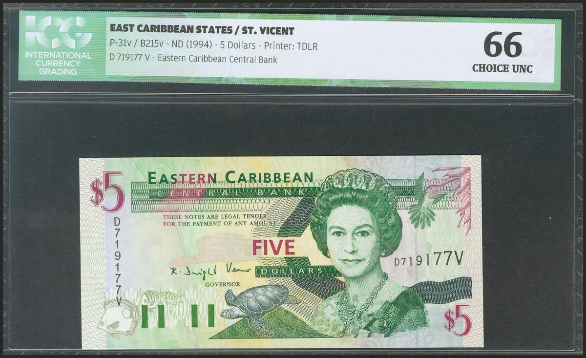 EAST CARIBBEAN STATES. 5 Dollars. 1994. Saint Vincent. (Pick: 31v). ICG66.