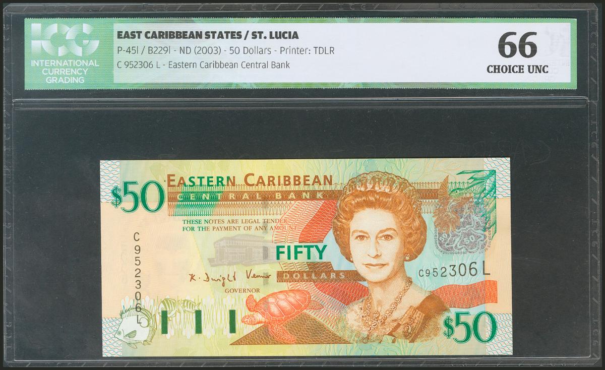 EAST CARIBBEAN STATES. 50 Dollars. 2003. Saint Lucia. (Pick: 45l). ICG66.