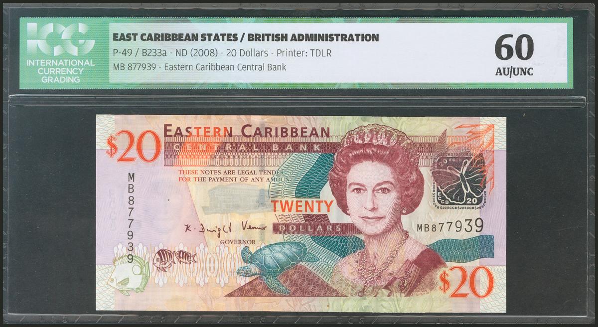 EAST CARIBBEAN STATES. 20 Dollars. 2008. (Pick: 49). ICG60.