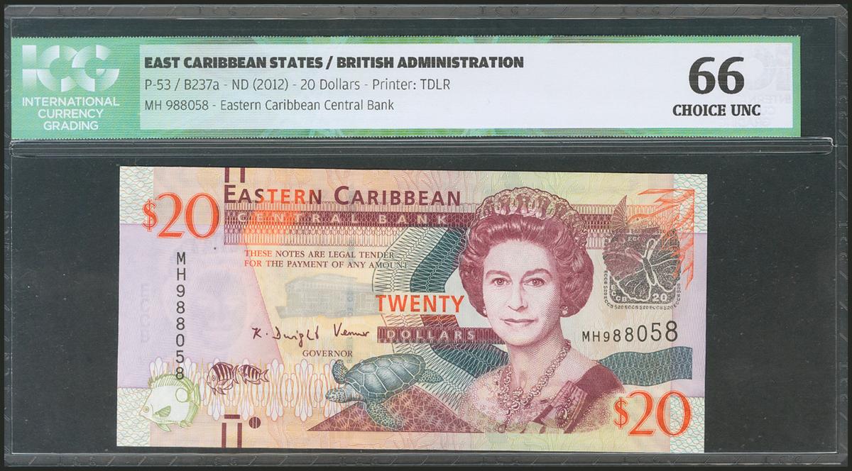 EAST CARIBBEAN STATES. 20 Dollars. 2012. (Pick: 53). ICG66.