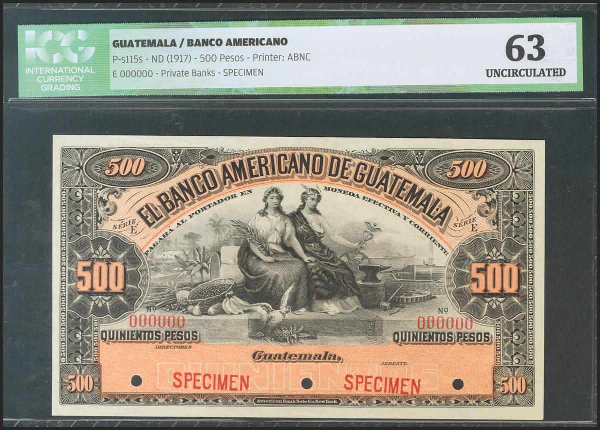 GUATEMALA. BANCO AMERICANO. 500 Pesos. 1917. Specimen E000000. (Pick: s115s). ICG63.