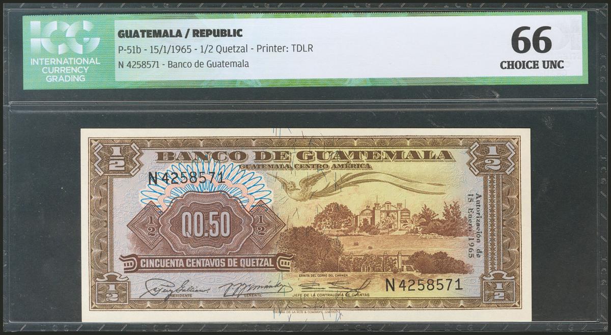 GUATEMALA. 1/2 Quetzal. 15 January 1965. (Pick: 51b). ICG66.