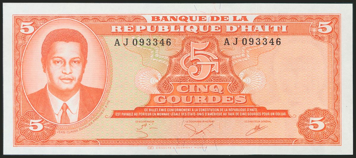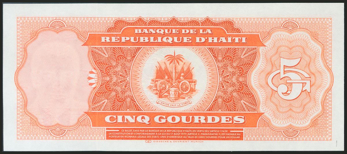 HAITI. 5 Gourdes. 1979. (Pick: 241). Uncirculated.
