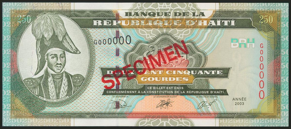 HAITI. 250 Gourdes. 2003. Specimen. (Pick: 269s). Uncirculated.