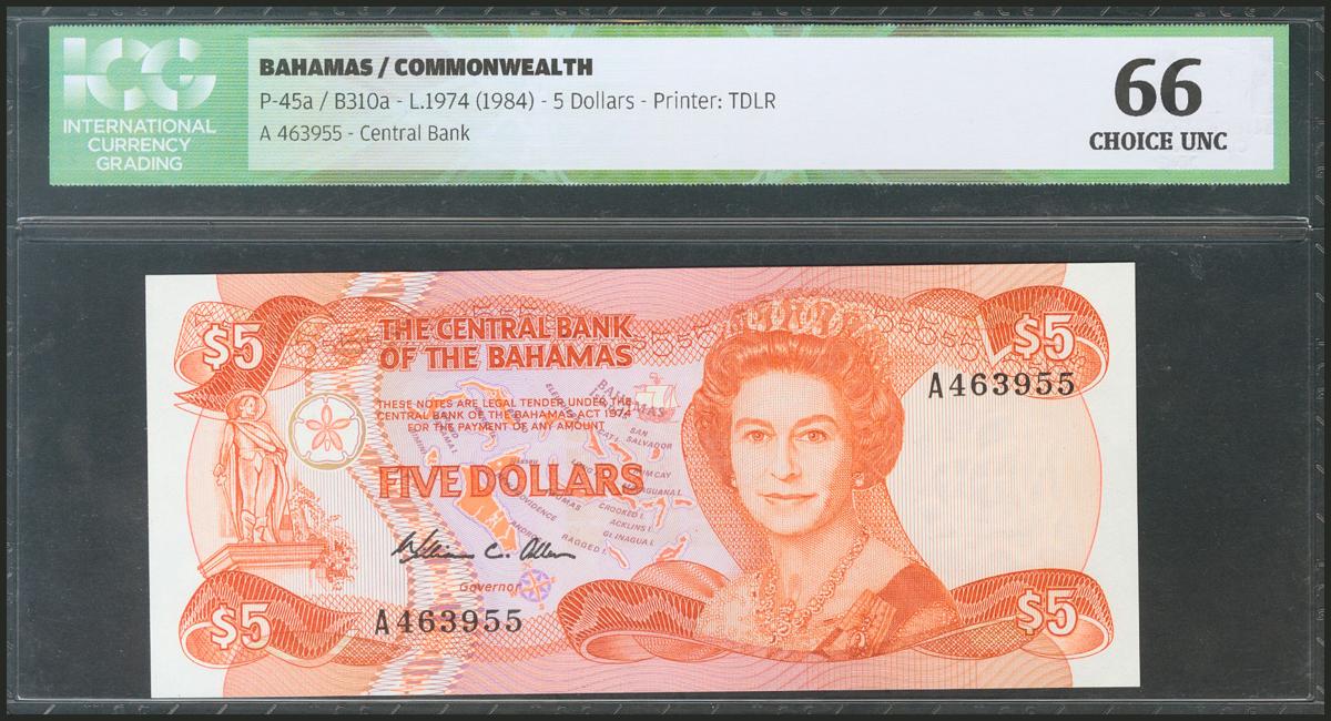 BAHAMAS. 5 Dollars. 1974. (Pick: 45a). ICG66.