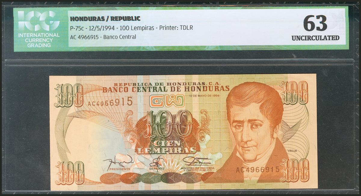 HONDURAS. 100 Lempiras. 12 May 1994. (Pick: 75c). ICG63.
