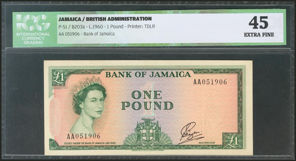 JAMAICA. 1 Pound. 1960. (Pick: 51). ICG45.