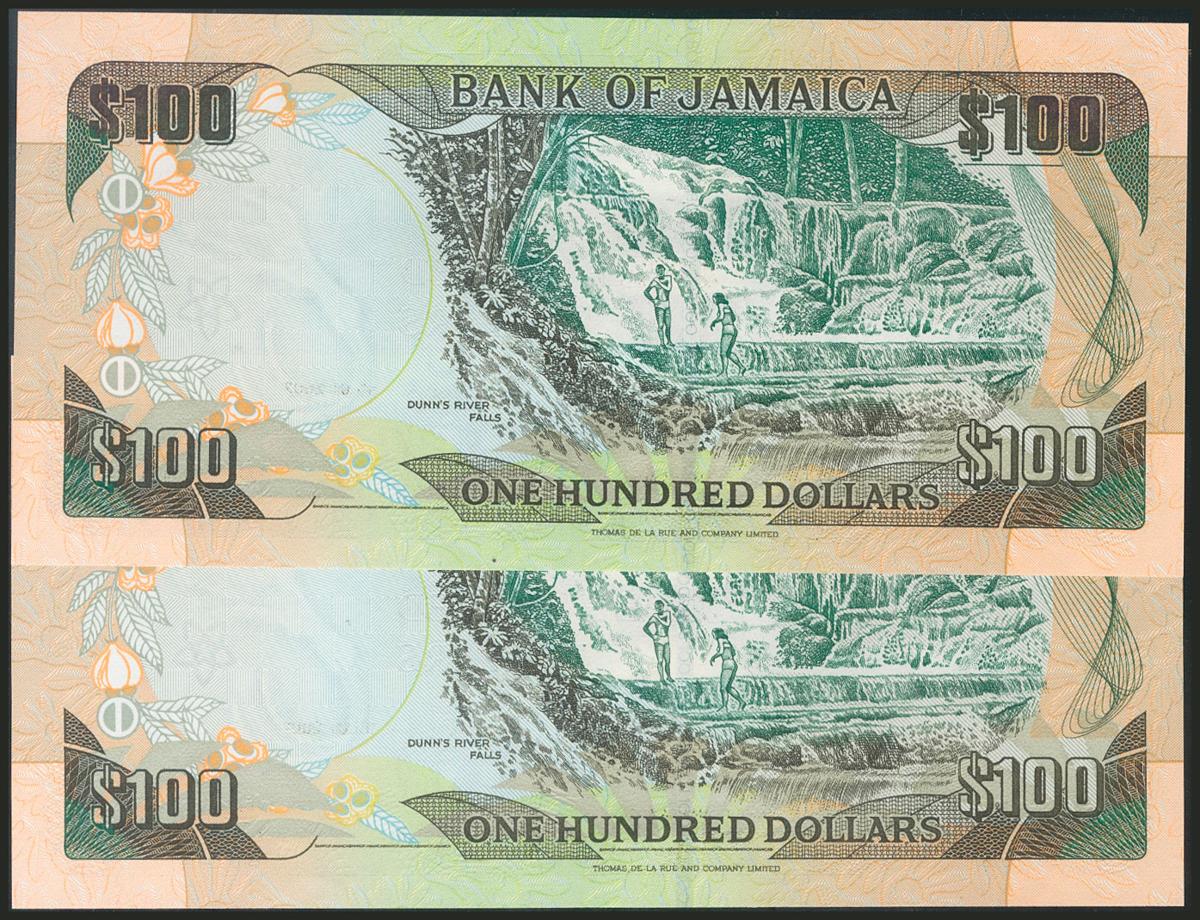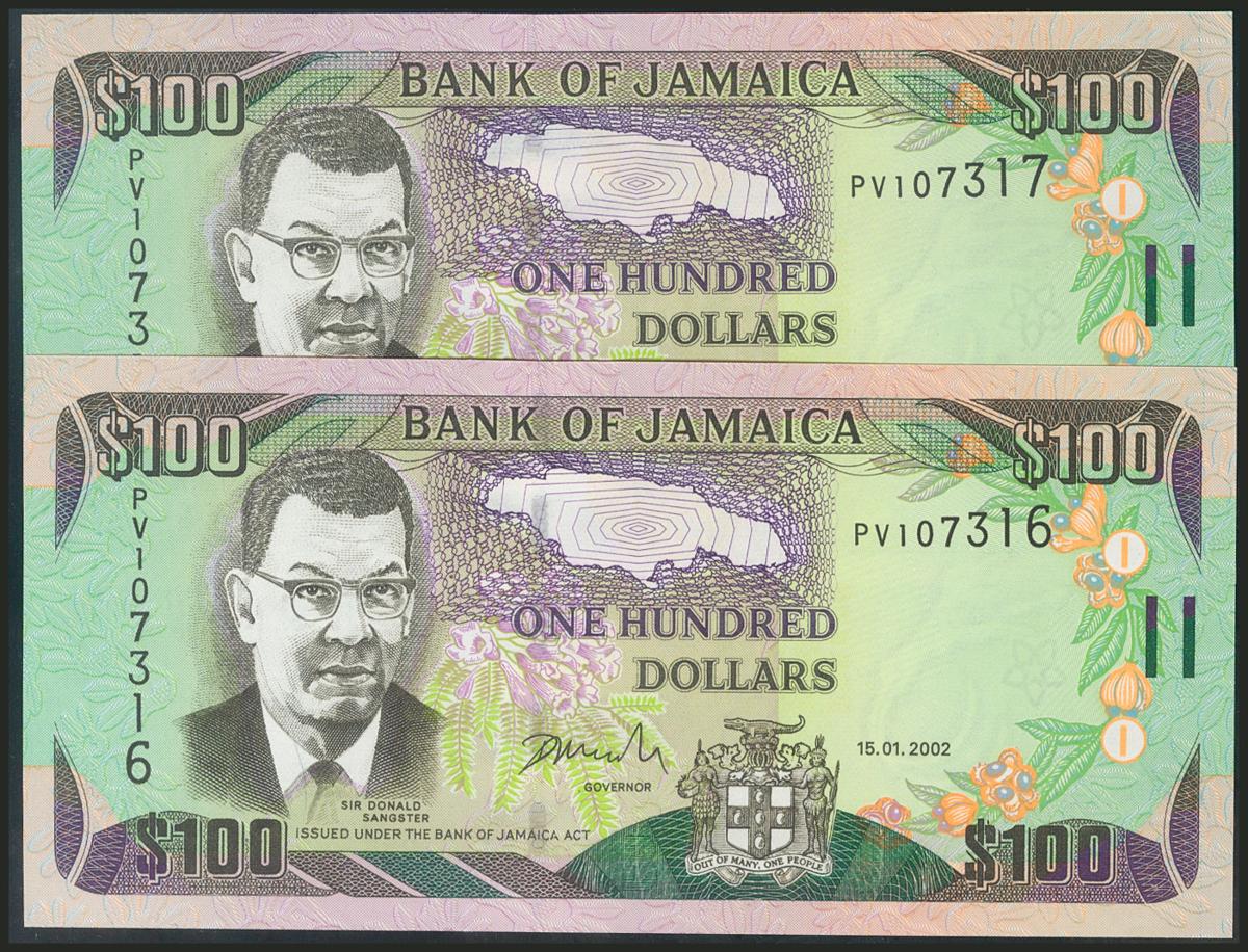 JAMAICA. 100 Dollars. 15 January 2002. Consecutive pair. (Pick: 80b). Uncirculated.