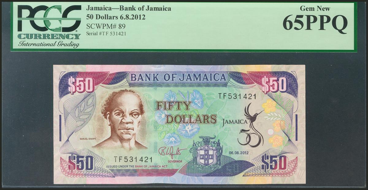 JAMAICA. 50 Dollars. 6 August 2012. (Pick: 89). PMG65PPQ.
