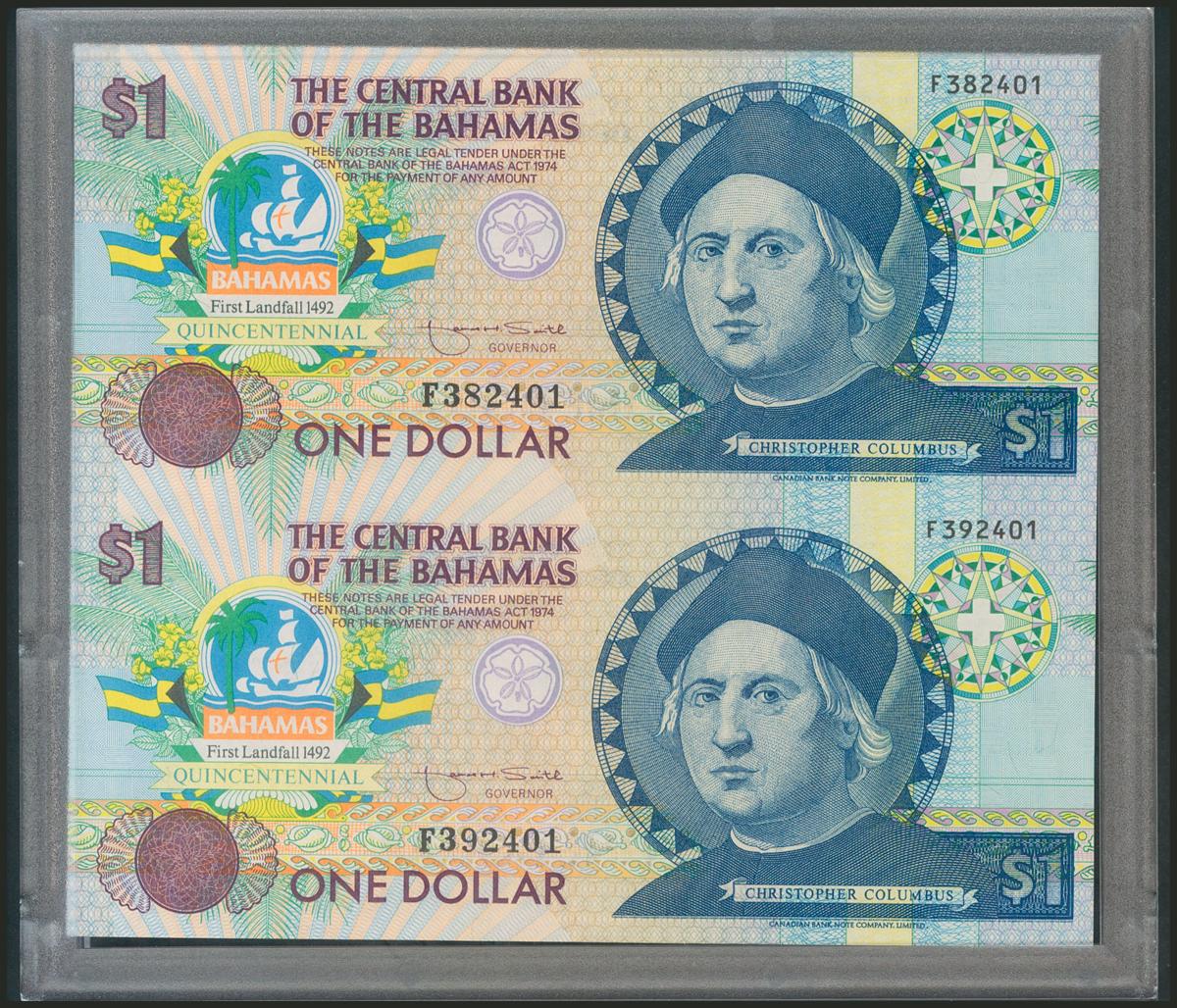 BAHAMAS. 1 Dollar. 1974. Uncut pair. (Pick: 50). Uncirculated.