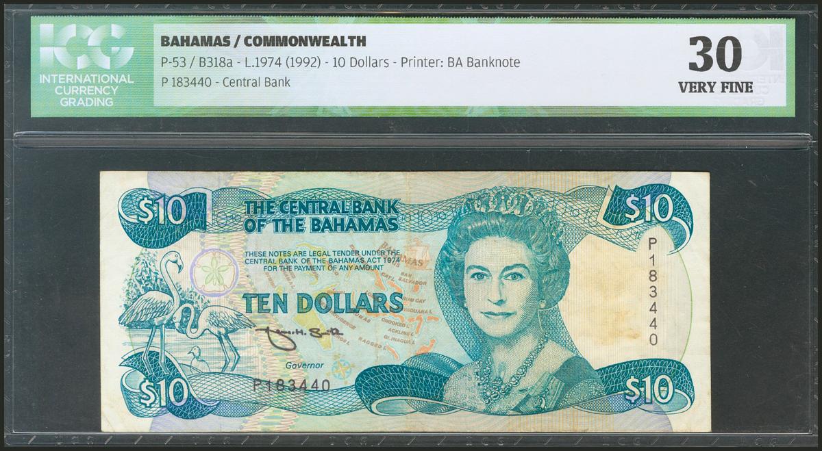 BAHAMAS. 10 Dollars. 1974. (Pick: 53). ICG30.