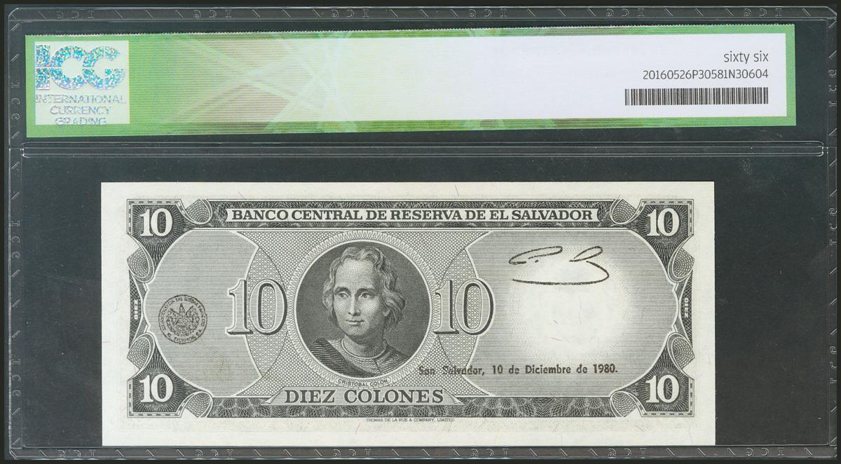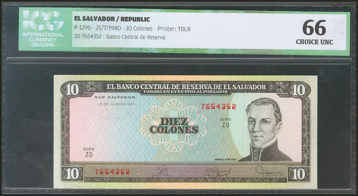 EL SALVADOR. 10 Colones. 21 July 1980. (Pick: 129b). ICG66.