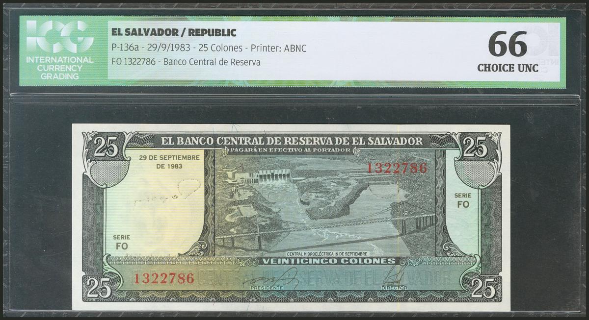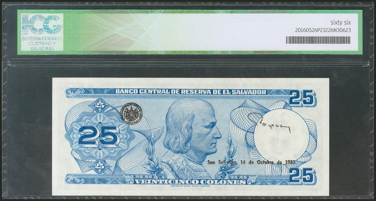 EL SALVADOR. 25 Colones. 29 September 1983. (Pick: 136a). ICG66.