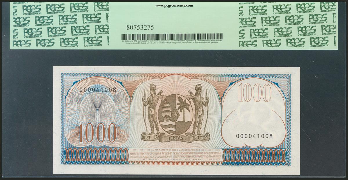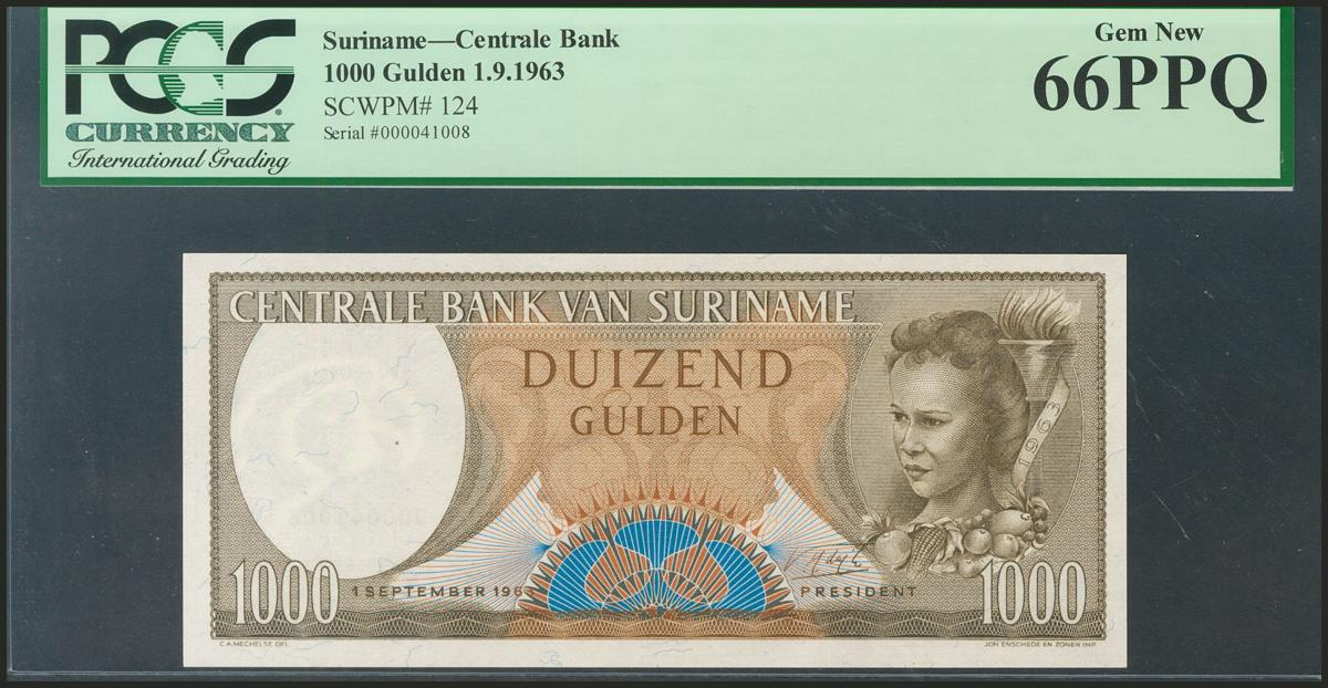 SURINAME. 1000 Gulden. 1 September 1963. (Pick: 124). PCGS66PPQ.
