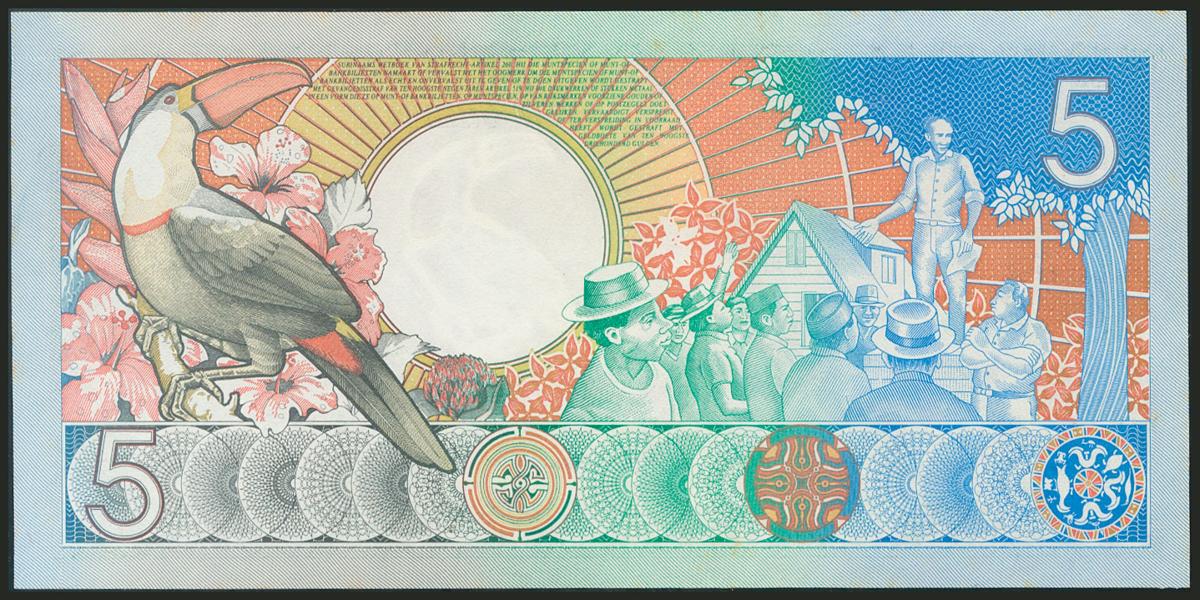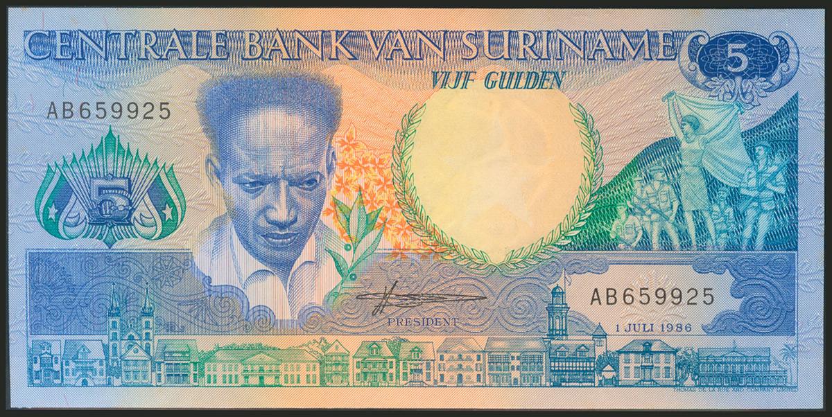 SURINAME. 5 Gulden. 1 July 1986. (Pick: 130). Uncirculated.