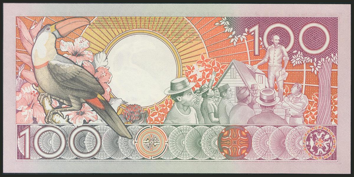 SURINAME. 100 Gulden. 9 January 1988. (Pick: 133b). Uncirculated.