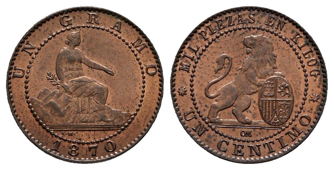 GOBIERNO PROVISIONAL. 1 Céntimo. 1870. Barcelona OM. Cal-27. Ae. 1,06g. EBC.