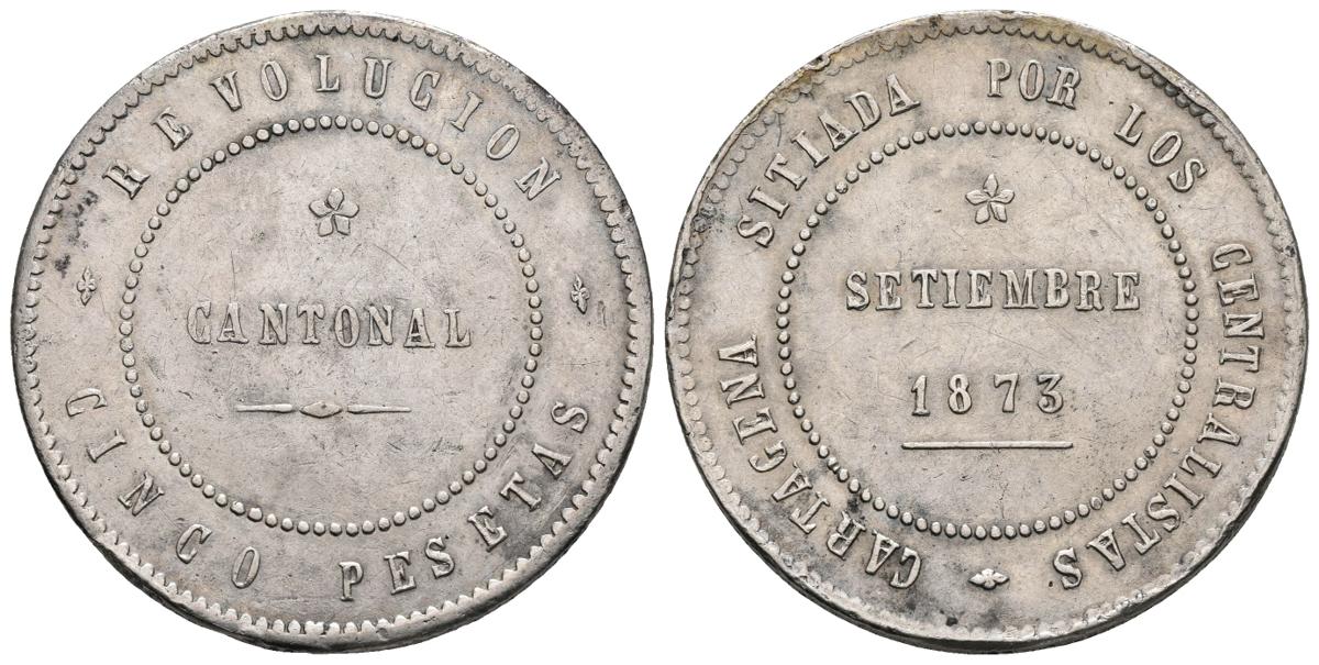 REVOLUCION CANTONAL. 5 Pesetas. 1873. Cartagena . Cal-5. Ar. 29,39g. MBC+.